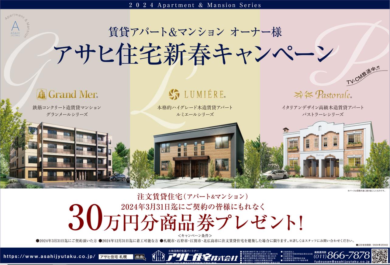 お問い合わせ先:011-866-7878 < アサヒ住宅株式会社 資産運用部 >