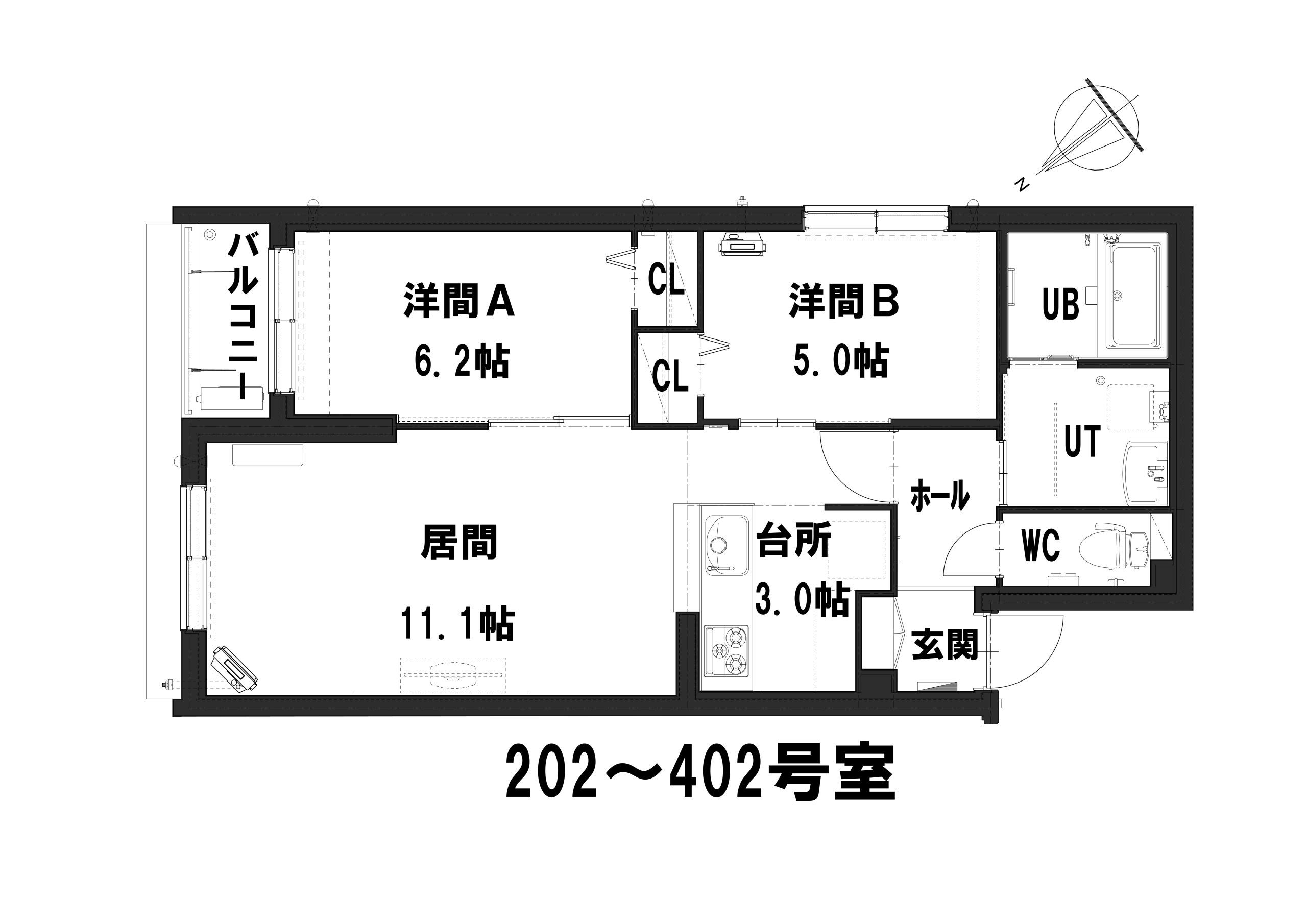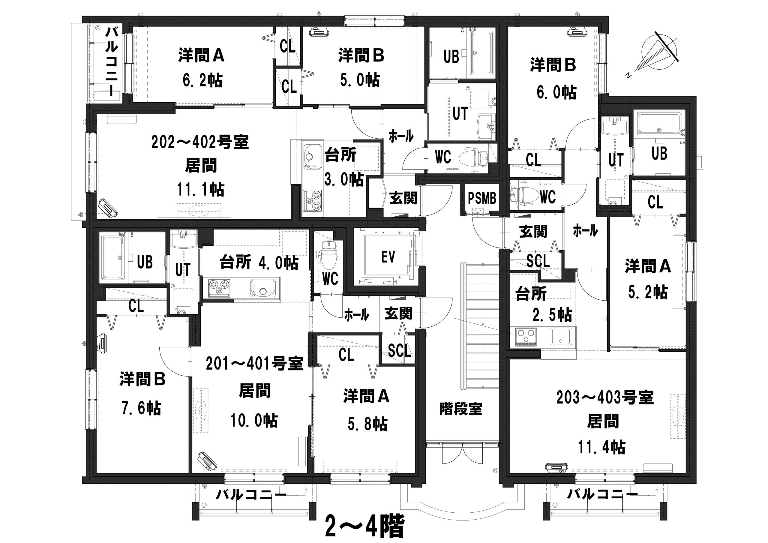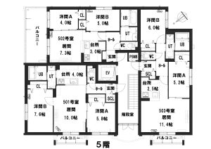 2LDK(48.32㎡、58.24㎡、60.21㎡、60.24㎡、88.35㎡)
